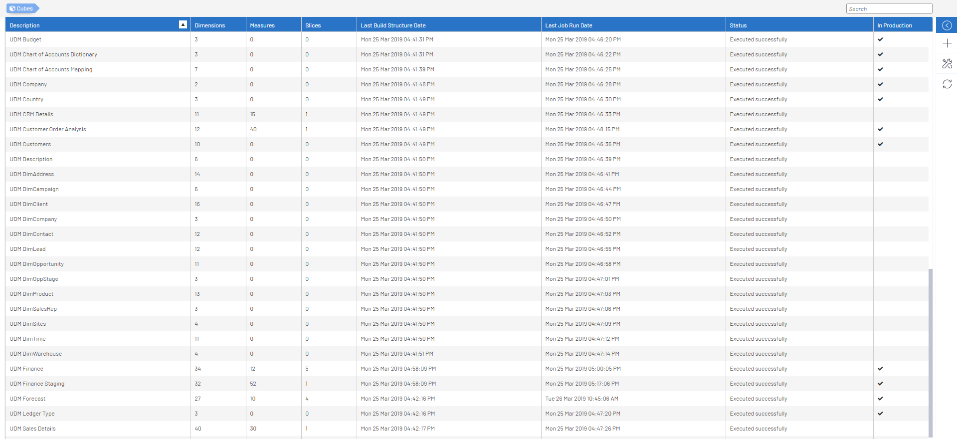 - La date et l'heure à laquelle une tâche (planifiée ou non) a été exécutée la dernière fois sur le Cube.