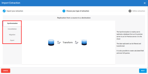 This feature allows you to import a pre-defined template or to restore a backup that you may have done yourself with the Export feature (refer to Export an Extraction for more details).