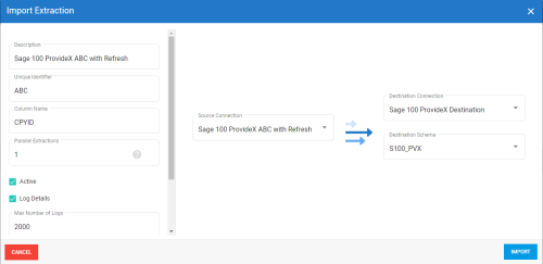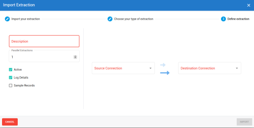 - Refer to Set Up the Extraction Panel to define the extraction and click on Import to finish the process.