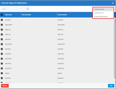 Some pre-defined templates are already available; if you don't have access to them, please contact your partner. An example of a pre-defined template you could use is the one which defines the list of tables and fields to be synchronized to send Sage 300, X3, Acumatica, Salesforce data to the Cloud.
