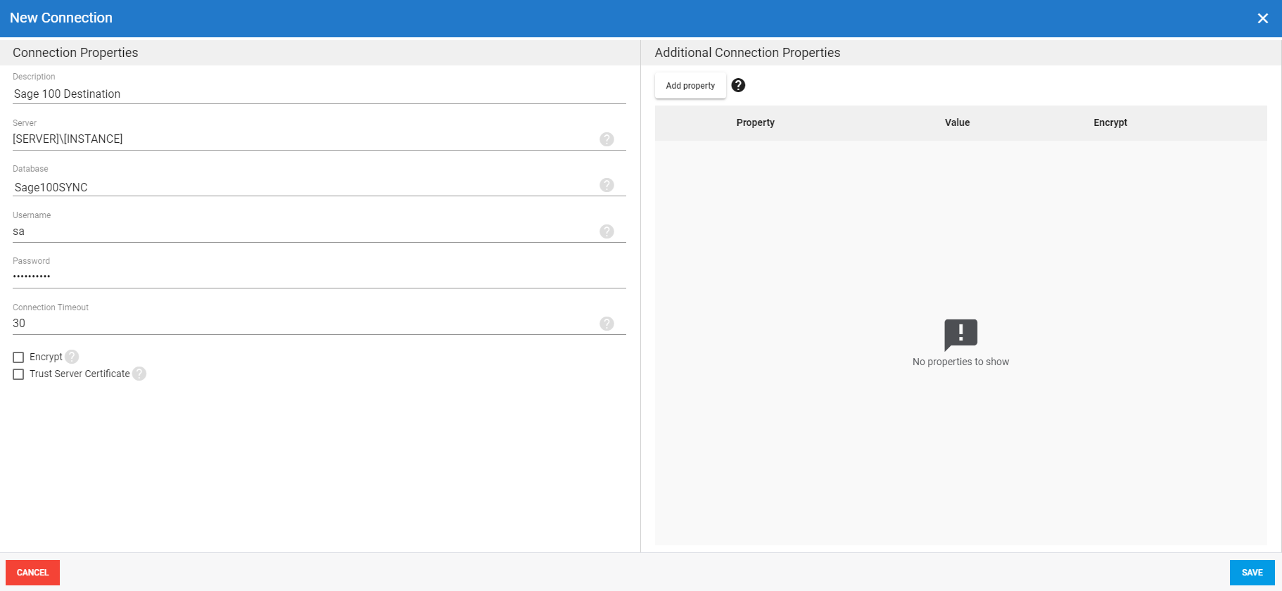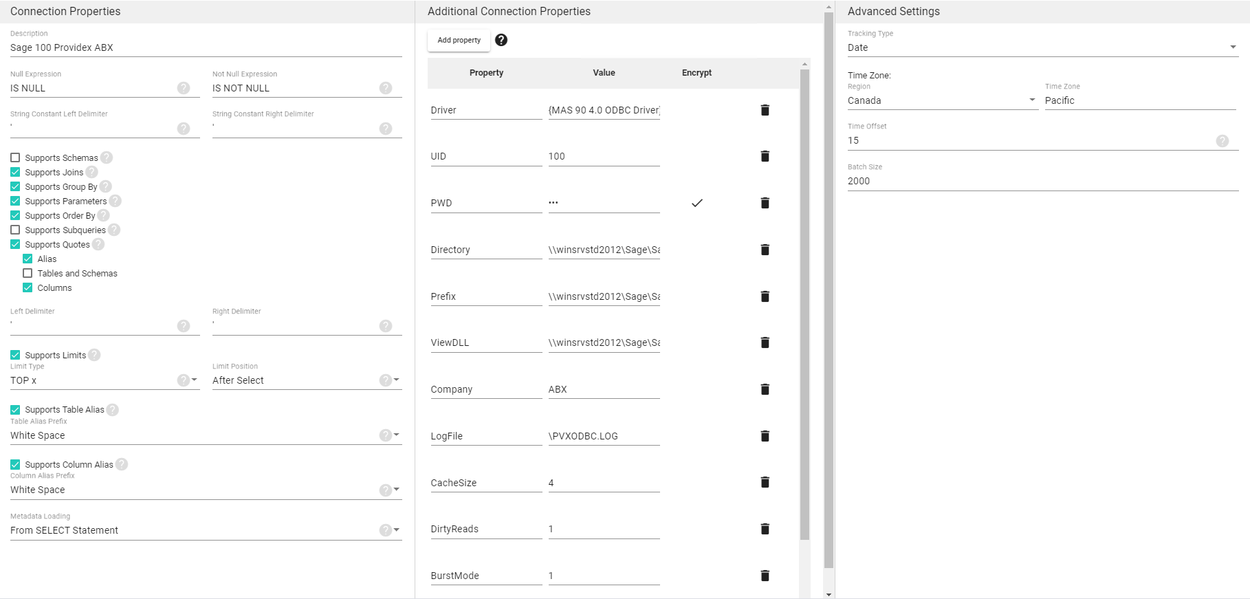 Unlike Sage 100 North America Premium, which runs on SQL Server, Sage 100 North America Standard uses the ODBC ProvideX driver. For this connection to work in DataSync, this driver requires specific configuration. You need to change the number of simultaneous connections in DataSync as follows: