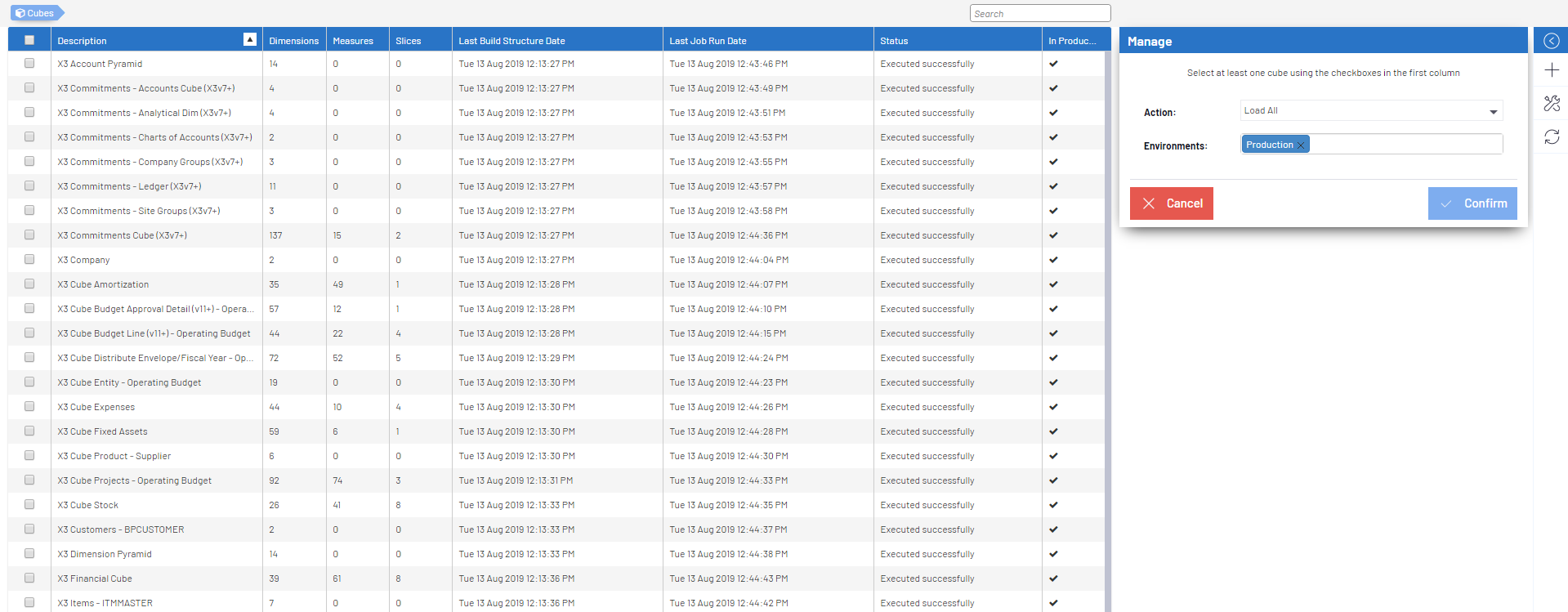 - In the left section, select all the Cubes to load by ticking the checkbox next to the Description column.