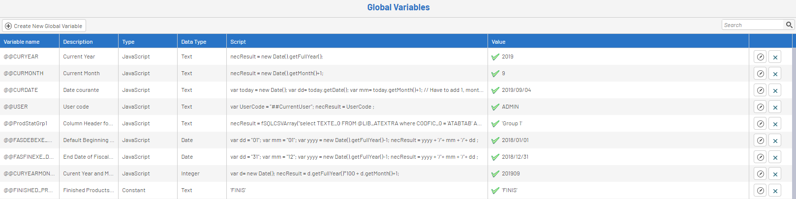 NoteBy default, the Type of global variable will be CONSTANT, you have the choice between CONSTANT (hardcoded value) and JAVASCRIPT (dynamic value).