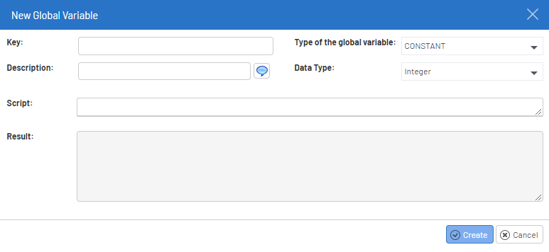 - In both cases, enter a Key and a Description to identify your global variable.
