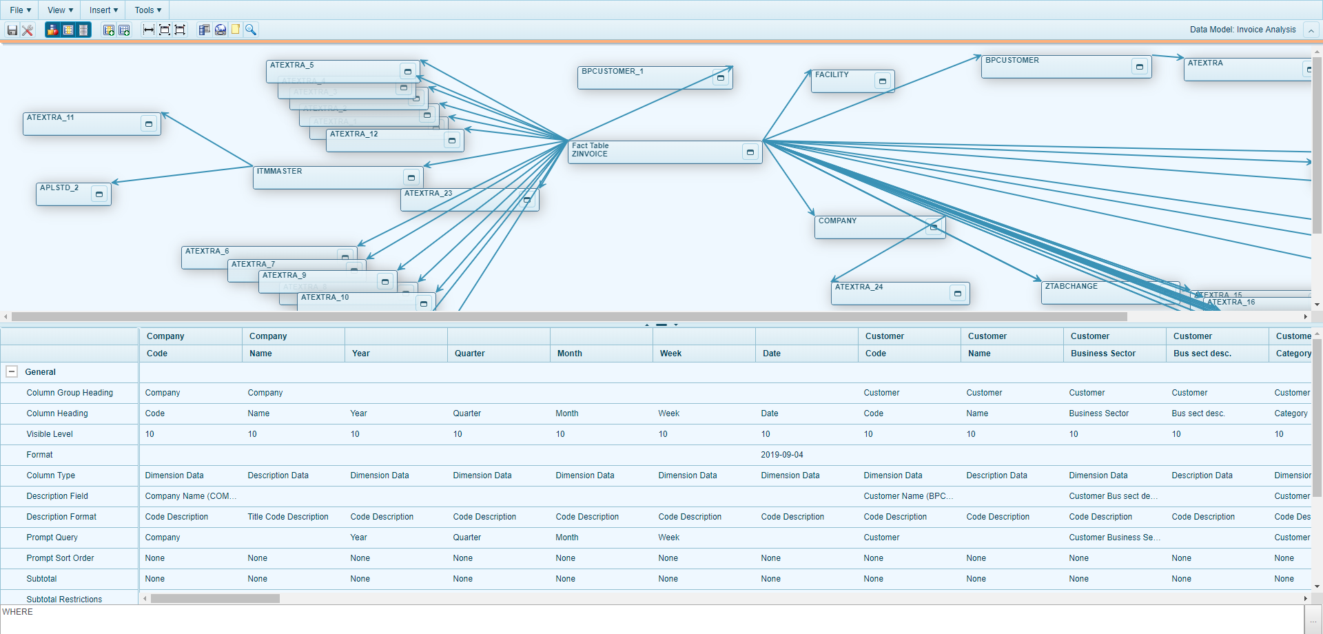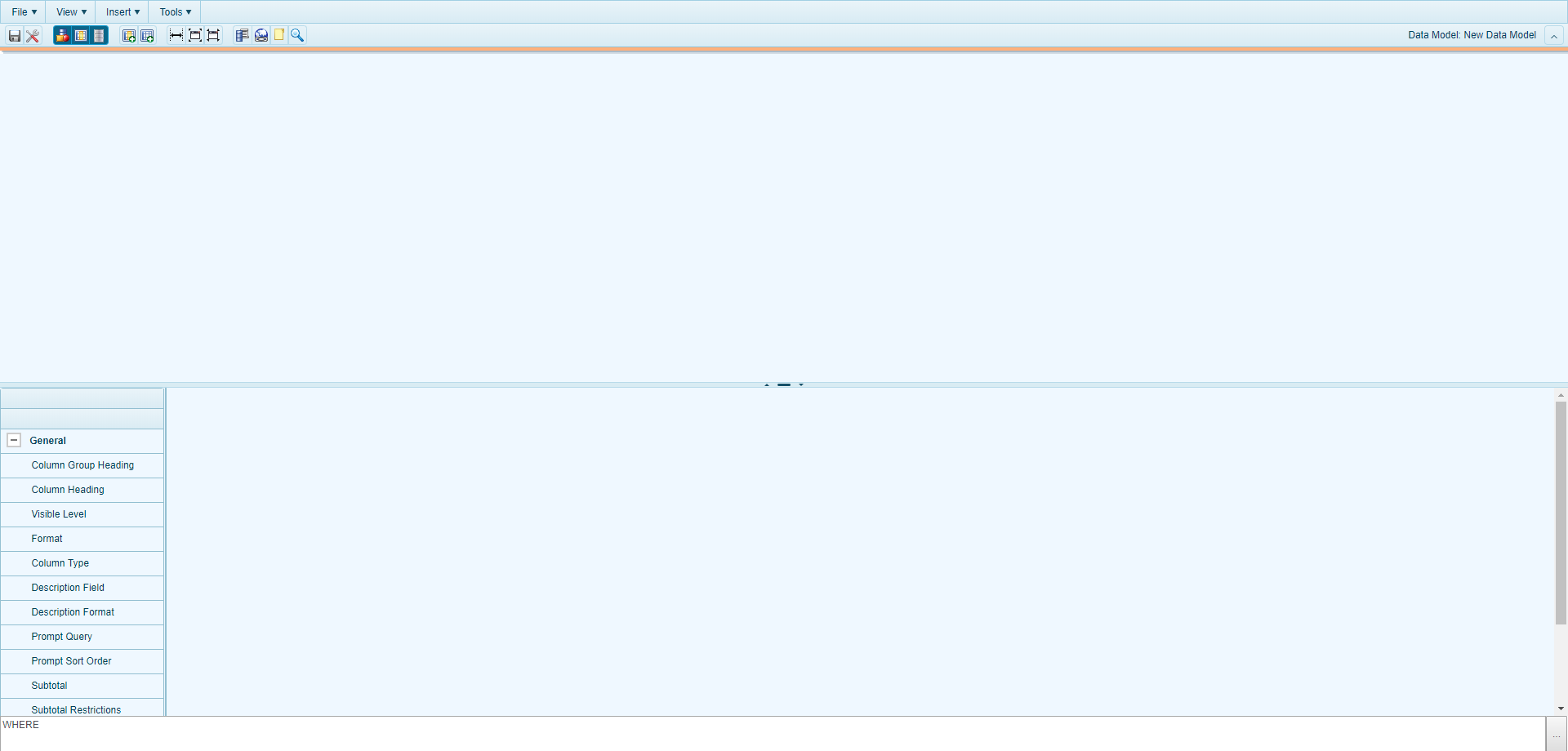 The Administrator defines which tables/views the Data Model will use, how they are linked, which fields to use and what properties to use. General Data Model properties can be defined as well.