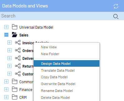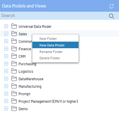 - In the Data Models and Views tab, right-click on any folder (including the root folder)