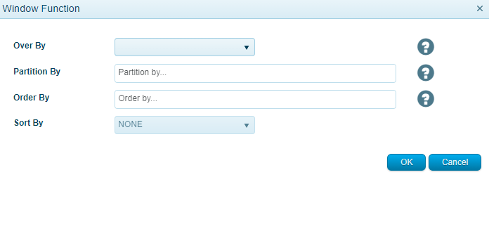 - Over By - Defines the window function calculation type (Mandatory Parameter)