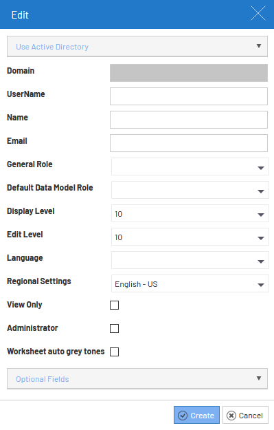 - Choose the level of authorization required to view the columns of a Data Model. This will be the maximum level authorized for this user. Please refer to Data Model Designer for more information on how to change the columns display level.