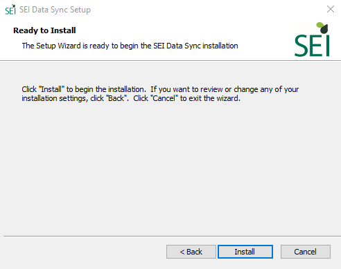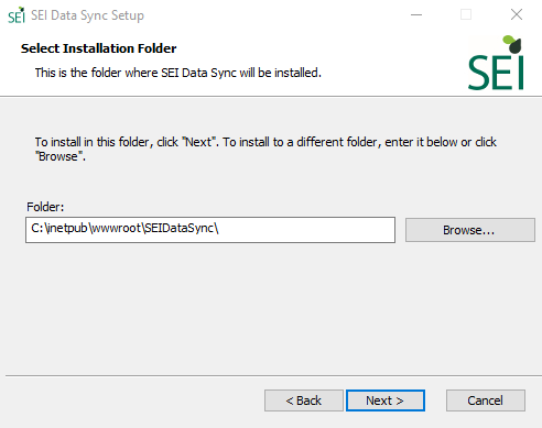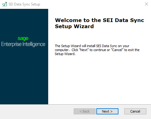 - Run the application SEI DataSync.exe and click on Next.Note