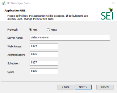 For http connection, it could be datasyncserver for http://datasyncserver:8134