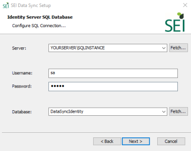Click on Fetch... to retrieve information from your SQL server (instances) and from your database server.