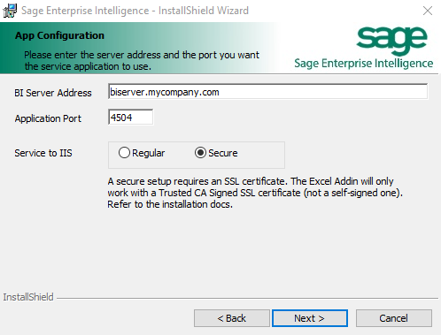ImportantEnsure that the port entered by default (4504) is not already being used by another website/application; if it is, select another available port. For a secure installation, the SSL Configuration section must have been done.