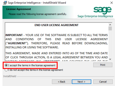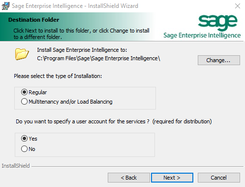 NoteAnswering Yes to the question: Do you want to specify a user account for the services? allows the user to input a User for all SEI services. Answering No installs with the general Windows profile.