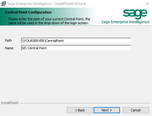 NoteThe installation package does not validate the path, please ensure you enter the Central Point path that was used in the installation of the application SEI Central Point for SQL Server.exe.