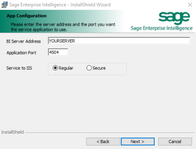 - Enter the Server Name and the Application Port to use.