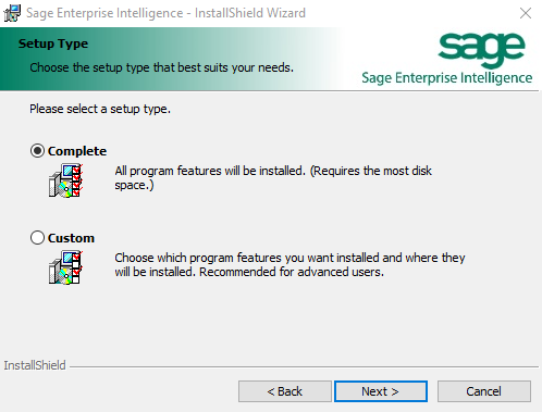 - Select Complete as the setup type to install all SEI components or Custom to select only some