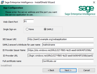 If choosing to setup SAML2 Single Sign-on, new fields will display: