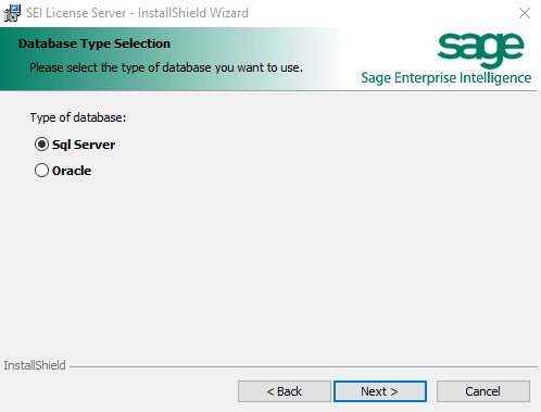 - Select your Database Server, SQL Server or Oracle, then click Next.