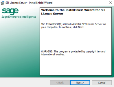 - Run the application SEI License Server.exe and click on Next.