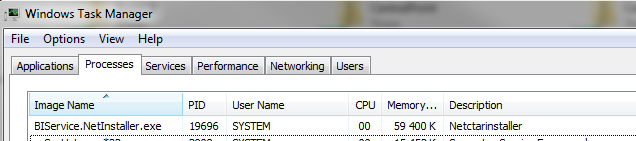 If there is a risk to interrupt sensible distribution or OLAP Jobs running, manually stop the BI Service and verify that the task BI Service.NetInstaller.exe has ended before uninstalling the program.