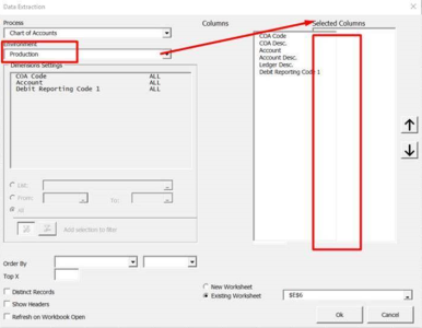 When performing a Data Extraction, I cannot add Columns to the Selected Columns section because the Columns section is covering the arrows that allow me to do so.![]()