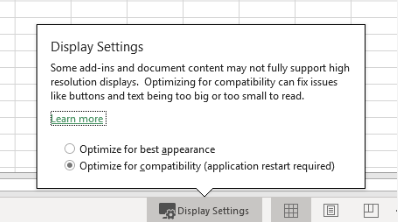 In Excel 2016 and up, there is a display settings. If it set to Optimize for best appearance it will mess up the window. Set it to Optimize for compatibility. ![]()