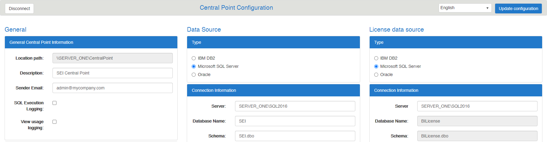 - Save the same BI License data source on all Central Points: