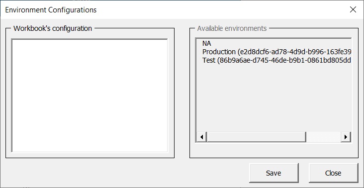 Environment Configurations in the Excel Add-ins tab.