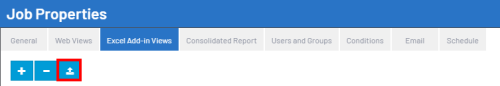 The Excel Add-in Views tab allows you to set up one or more Excel Files to be distributed during the Job execution.