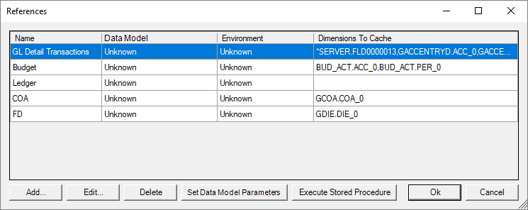 Users create a reference for each data model they intend to access in an SEI formula within their workbook. Of course, if a user intends to access data from several different data models and/or environments then several references can be created. The number of references that can be created within a workbook is unlimited.