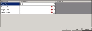The Value (From) column displays the default value configured in the Web Client. To set a value for each parameter, enter or change the value in the Value (From) column for each field name.
