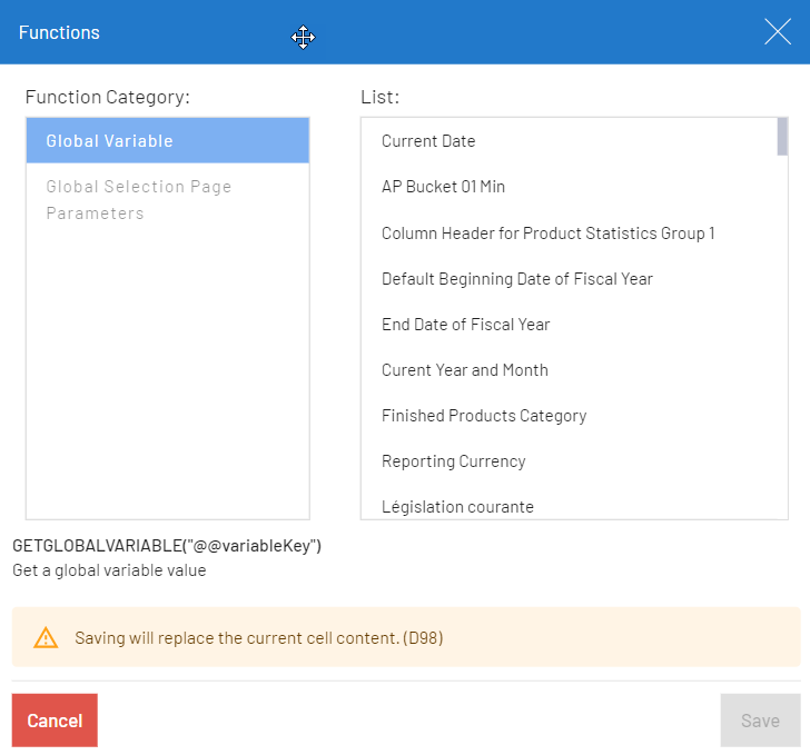 If you would like to use a global variable , click Functions from the Analysis tab.