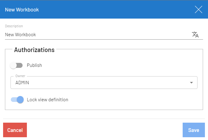 Setting Description Authorizations Description Enter a meaningful description for the workbook.