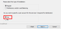Pour la question Do you want to specify a user account for the Services, sélectionnez Yes et cliquez sur Next.
