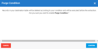Available only for Migration extractions, purging allows you to clear a table based on a specified condition before importing new data.