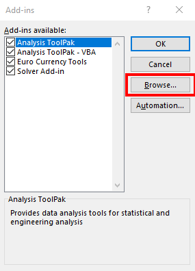 4. Find the SEI Add-in for Excel.xla file in C:\Program Files\Sage\SEI Add-in for Excel and click OK twice.