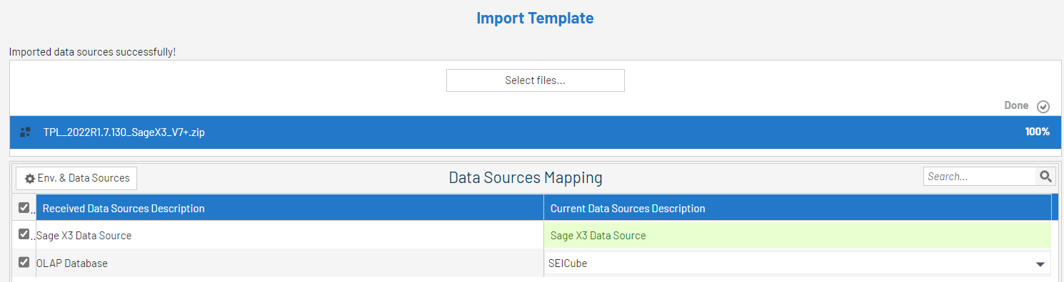 1. In the Received Data Sources Description column, ensure that only the data source options you want to use from the template are selected.