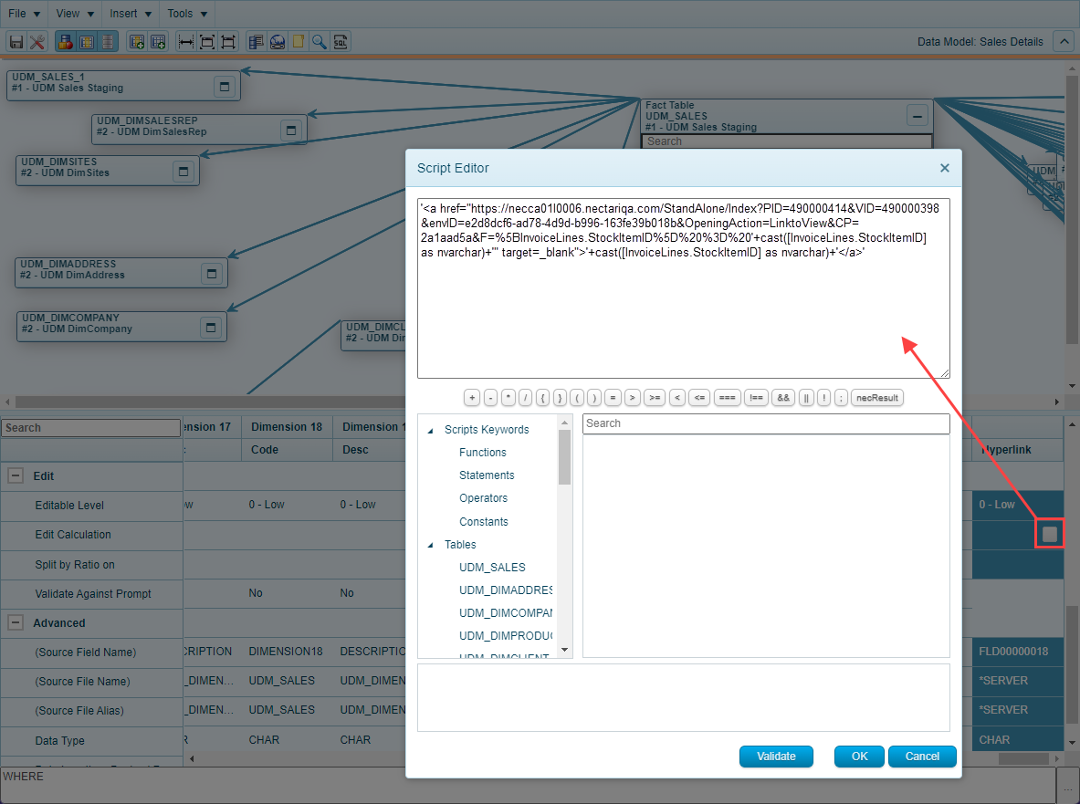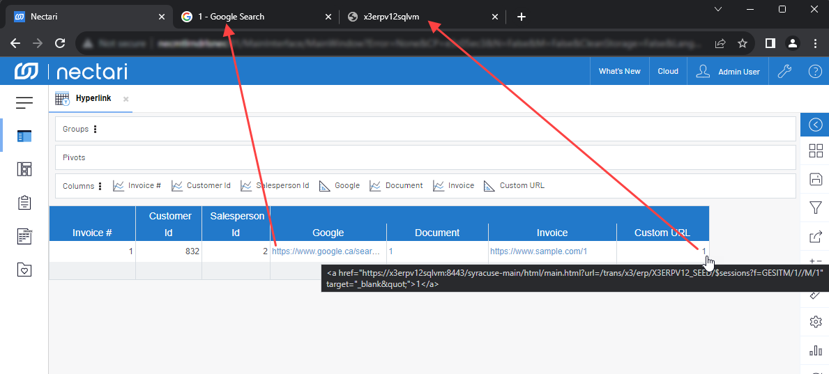 By clicking the link in the worksheet grid, a new window will open to display the URL in a browser.