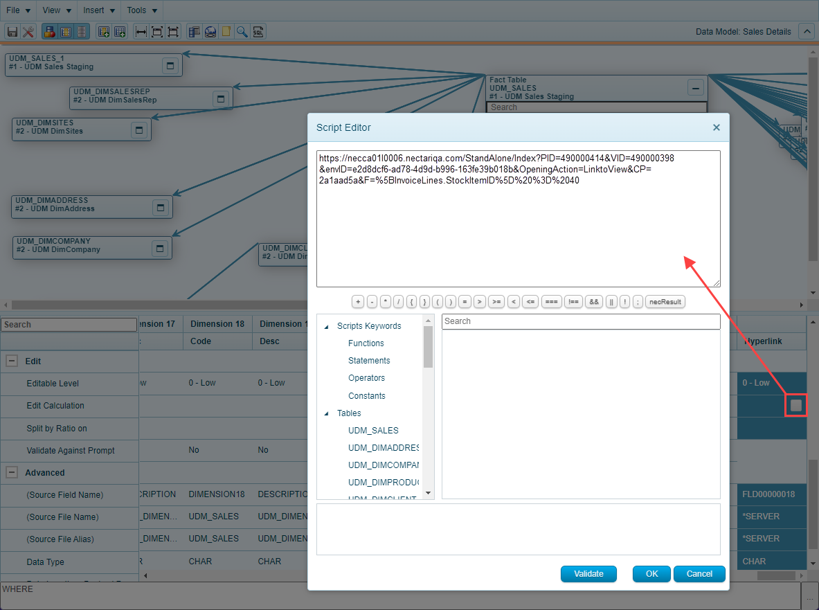 By clicking the link in the worksheet grid, a new window will open to display the URL in a browser.