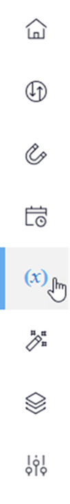 Vous pouvez également accéder à la page des Variables depuis n'importe quel endroit de l'interface DataSync en cliquant sur l'icône Variables dans le menu latéral de gauche (voir ci-dessous).