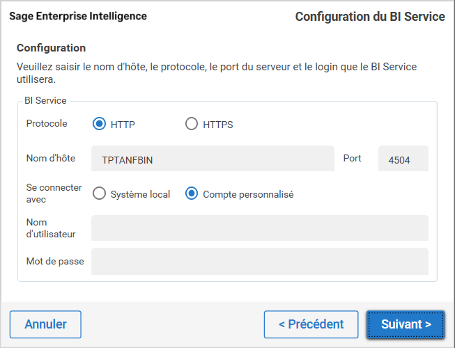 Saisissez le port pour l'URL du BI Service. Le port par défaut est 4504.