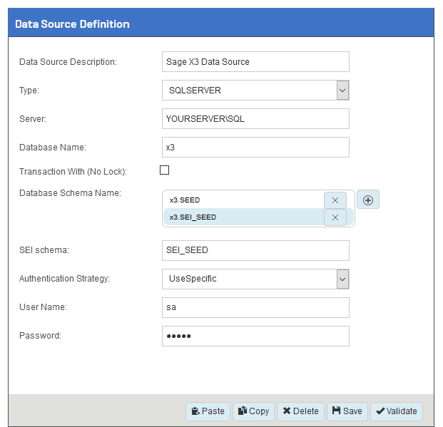 Description de la source de données Sage X3 Data Source