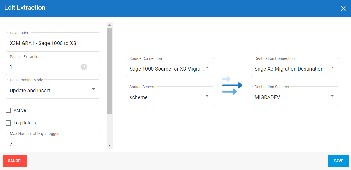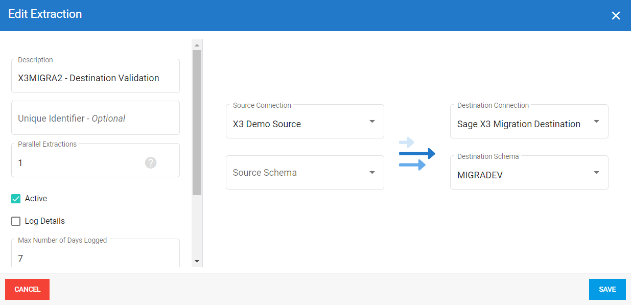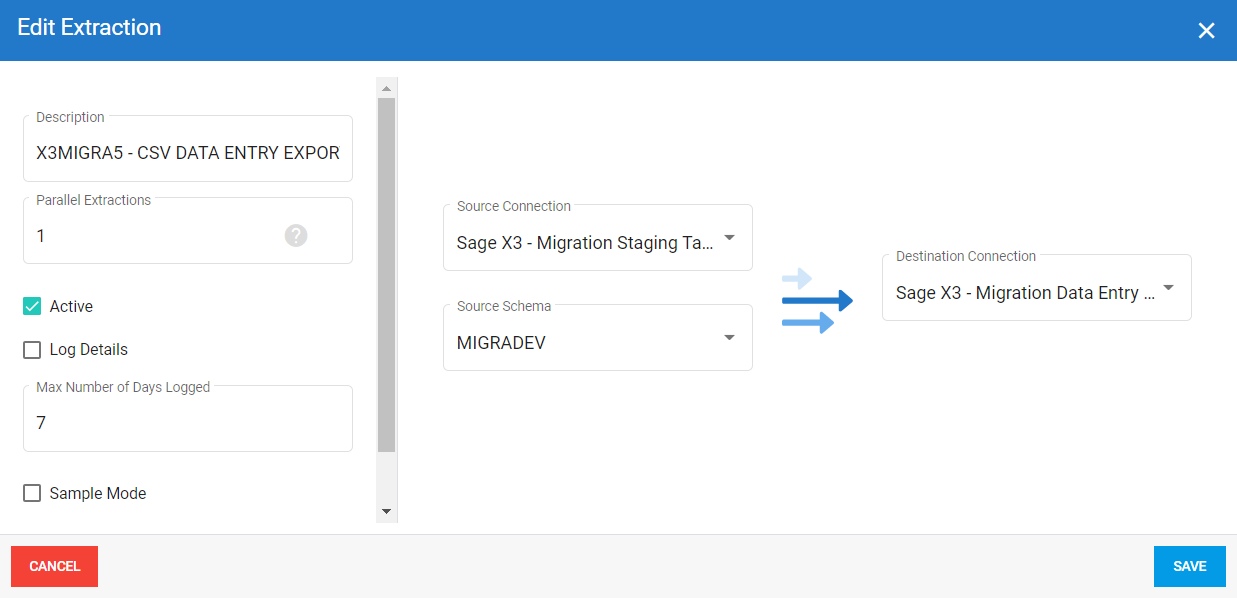 1. Import the extraction by selecting the Synchronization extraction type as described in Adding an Extraction. Use your Sage Intacct database as the source and your migration database as the destination.