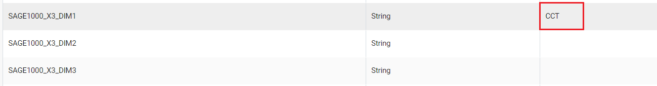Enter the same analytical dimension code (or type) as the one defined in Sage X3 (e.g. CCT for Cost Center).