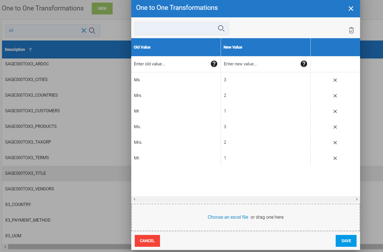 • If you have an Excel file with a predefined mapping, you can drag and drop your file into the dialog box.