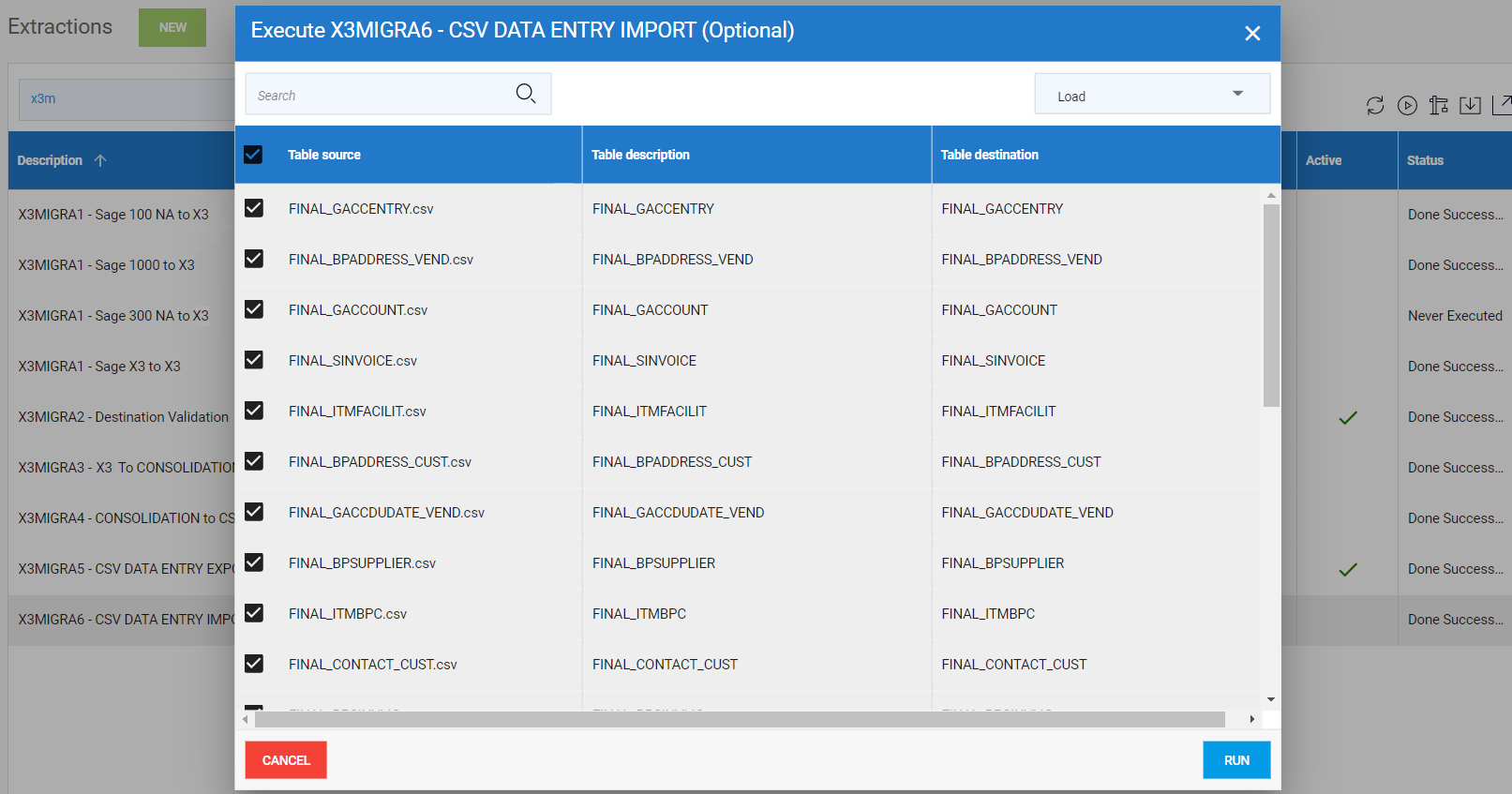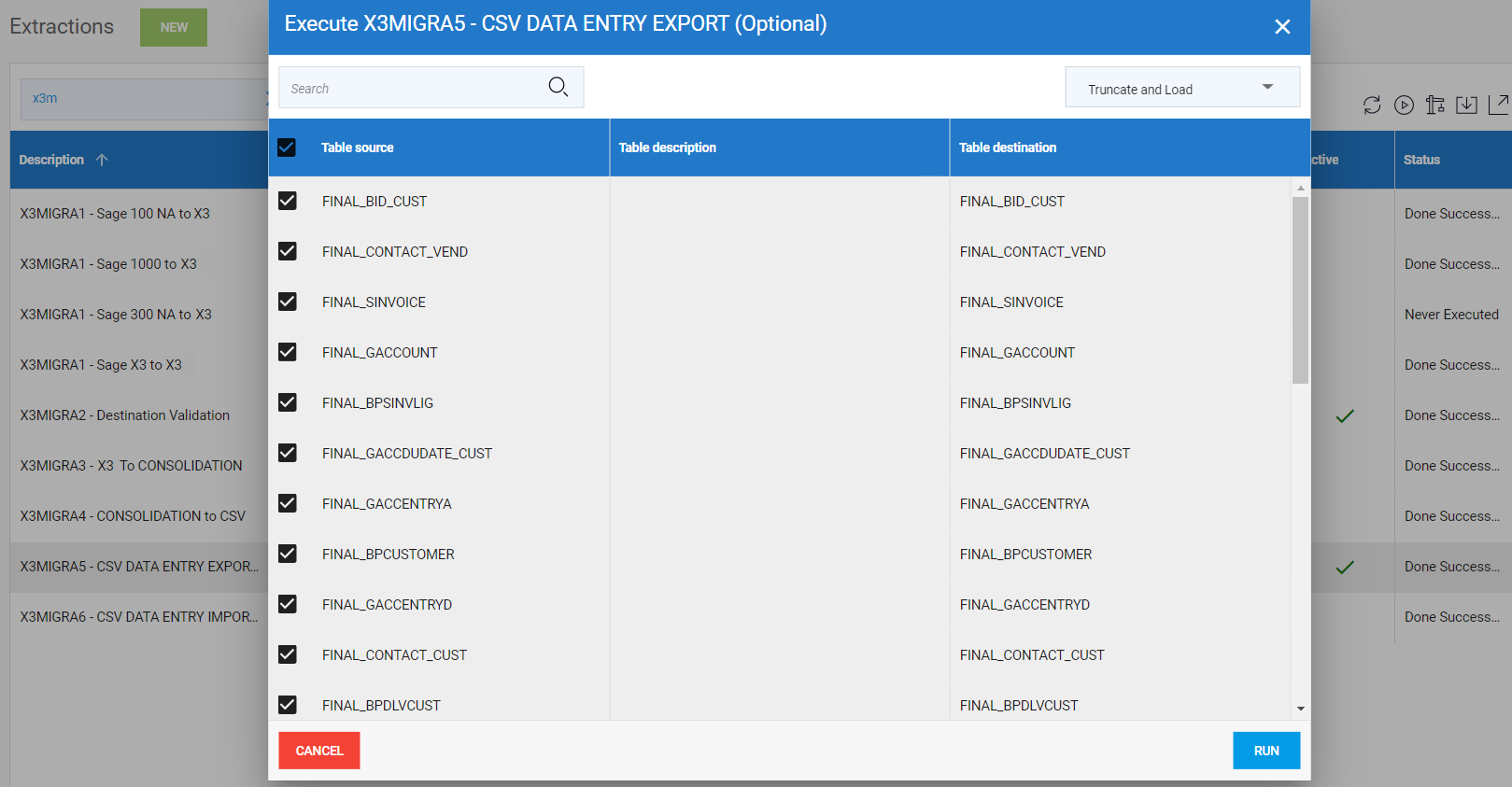 3. In DataSync, run Extraction 6 to import the CSV and update the Final tables.