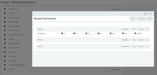 Click one of the lines and select Nectari in the Role Name drop-down list.