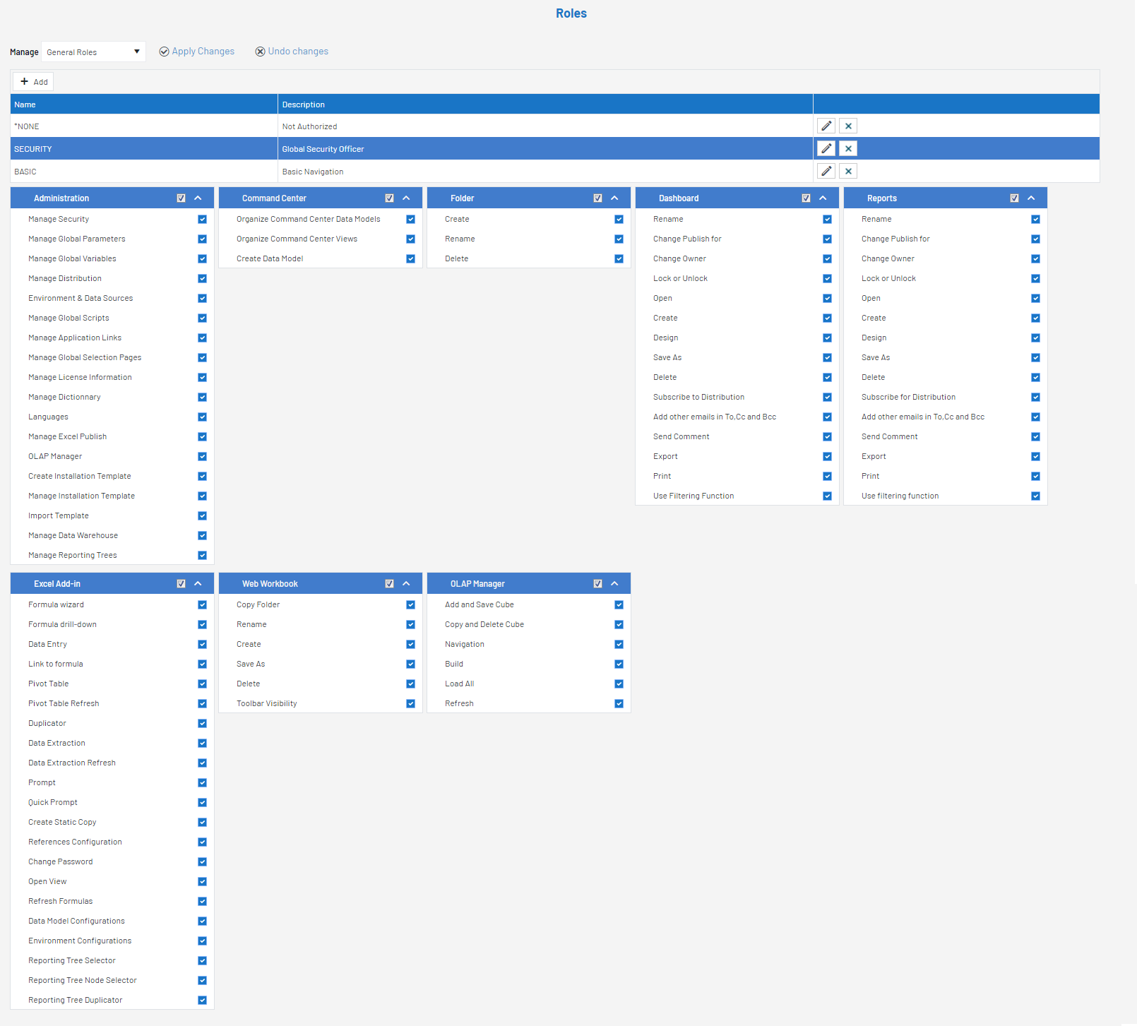 SECURITY should be assigned to administrators or super-users responsible for building and maintaining data models, managing governance, OLAP cubes, and distribution jobs, as well as creating new environments.