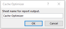 Enter a sheet name for your optimization report in the pop-up window and then click OK. Please note that you cannot use the name of an existing sheet.
