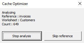 - It provides recommendations on how to optimize the workbook's references and formulas. Users can then easily implement those recommendations via the cache optimizer, if they so choose.
